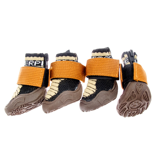 Трикотажные ботинки коричневого цвета от бренда Jack&King представляют собой удобную и функциональную обувь для защиты лап домашних животных. Верхняя часть выполнена из мягкого эластичного трикотажа, который плотно облегает конечность, не ограничивая движений. Обувь оснащена прочной резиновой подошвой. Для надежной фиксации предусмотрена комбинированная система: застежка-молния в задней части ботинка и регулируемый ремешок на липучке, который позволяет плотно закрепить обувь на лапе.