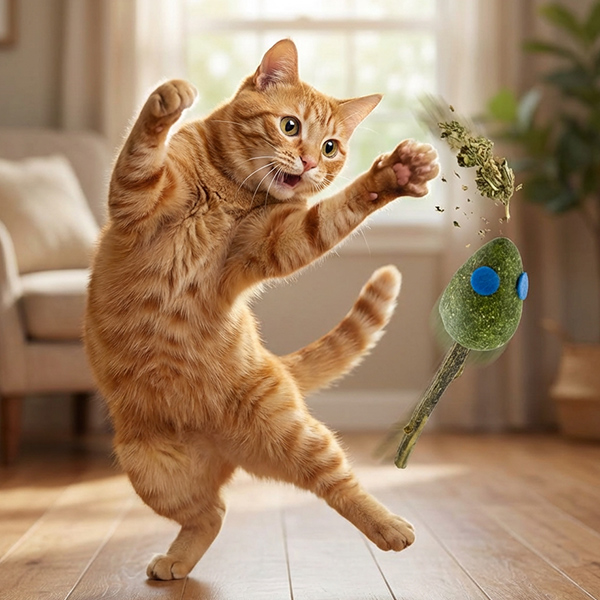Игрушка полностью безопасна и состоит из экологически чистых материалов. Эффект от мататаби и кошачьей мяты является индивидуальным для каждого животного и обычно длится от 5 до 15 минут. Использование натуральных компонентов помогает переключить внимание кошки с предметов интерьера на игрушку.