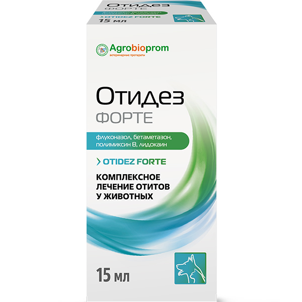 Лекарственный препарат Отидез Форте применяется для лечения собак и кошек при острых и хронических формах отита, поверхностных дерматитах наружного уха и слухового прохода бактериальной и грибковой этиологии. Препарат эффективно снимает проявления аллергических реакций на коже в области уха и прилегающих поверхностях. Отидез Форте обладает широким спектром антимикробной и антигрибковой активности, оказывает выраженное противовоспалительное, противоаллергическое и обезболивающее действие. При наружном применении действующие вещества практически не всасываются, обеспечивая местный лечебный эффект.