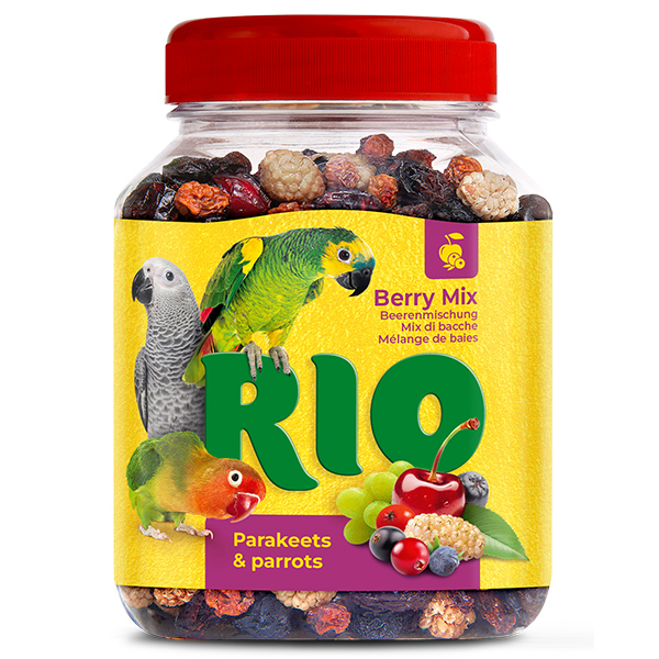 Ягодная смесь – аппетитный микс спелых ягод, богатых витаминами и антиоксидантами. Полезное и вкусное лакомство содержит рябину, тутовник, рябину черноплодную, клюкву, изюм, можжевельник, вишню и черную смородину, которые порадуют средних и крупных попугаев и разнообразят их ежедневный рацион. Отдельные ягоды из смеси можно предлагать в качестве поощрения, помогая питомцу осваивать новые навыки и укреплять доверительные отношения.