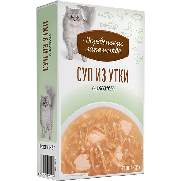 Деревенские лакомства д/кош пауч суп из утки с лососем 35г*4шт АКЦИЯ -10%