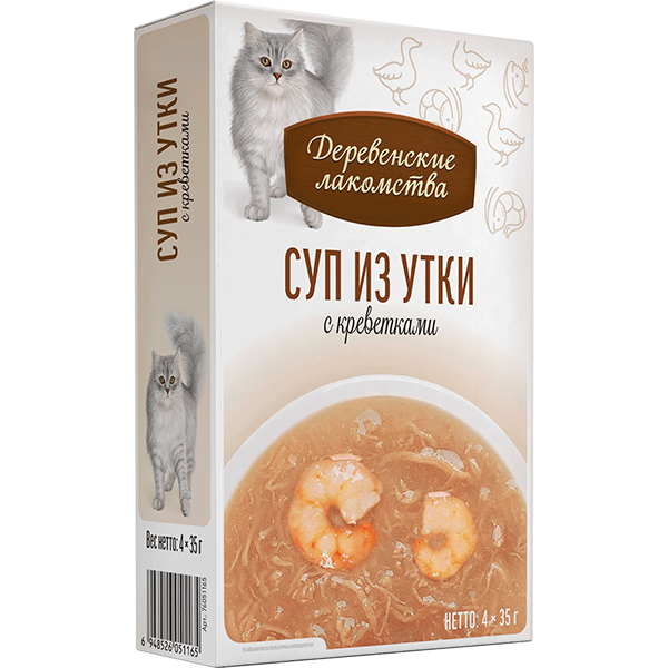 Деревенские лакомства д/кош пауч суп с из утки с креветкой 35г*4 шт АКЦИЯ -10%