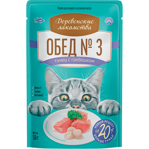 Деревенские лакомства д/кош пауч Тунец с гребешком Обед №3 50г АКЦИЯ -10%