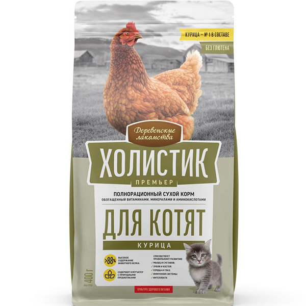 Деревенские лакомства Холистик Премьер сух.корм д/котят 400г курица АКЦИЯ -20%