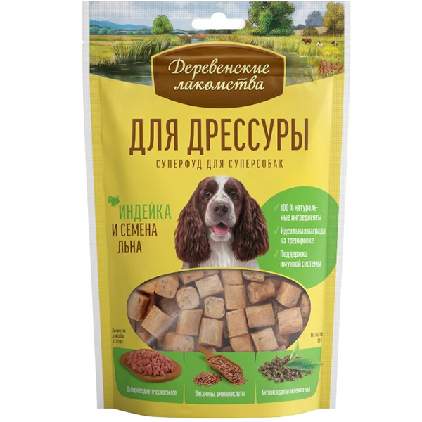 Деревенские лакомства д/дрессуры Индейка и семена льна 90г АКЦИЯ -15%