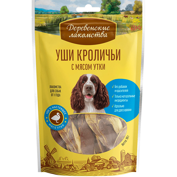 Деревенские лакомства д/соб. Уши кроличьи с мясом утки 90г АКЦИЯ -15%