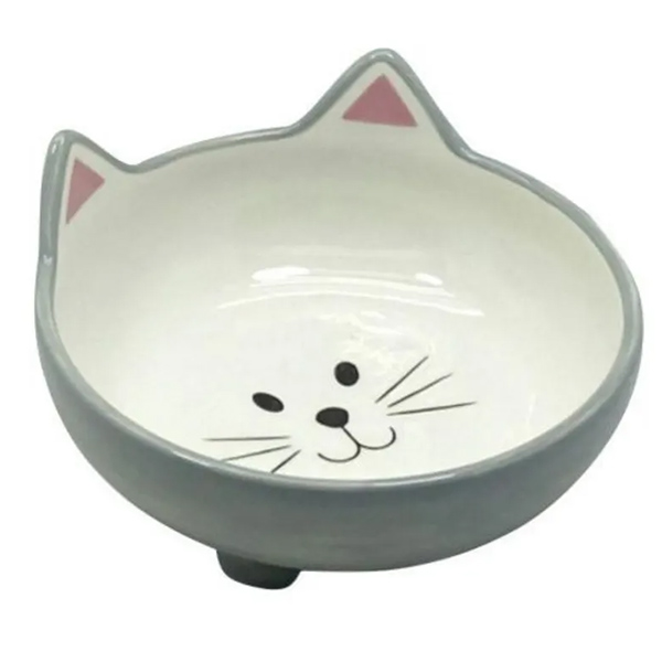Миска керам 0,20л серая, круглая 13,5*13*5,5см, Мордочка кошки №1