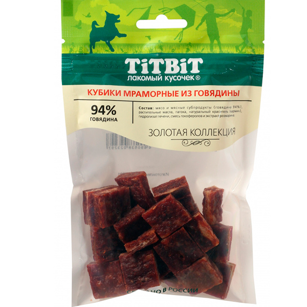 Титбит Золотая коллекция Кубики мраморные из говядины для собак 80 г АКЦИЯ/ -20%