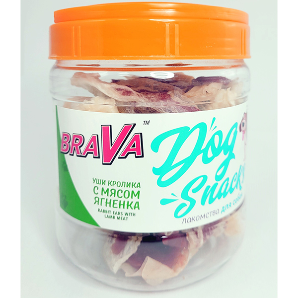 БРАВА лак-во для собак Уши кролика с мясом ягненка 450г