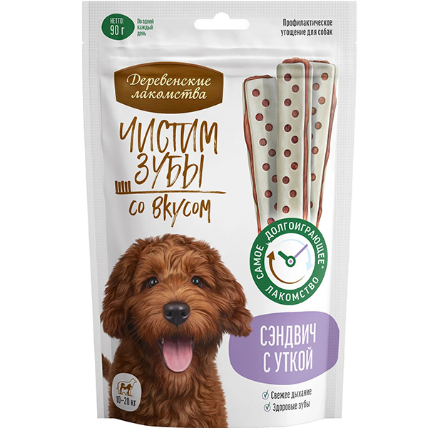 Деревенские лакомства Чистим зубы для собак Сэндвич с уткой 90г