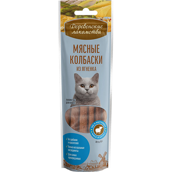 Нежные колбаски из отборного мяса ягнёнка раздразнят даже самую привередливую кошку. Вес (нетто): 45 г. Состав: мясо ягненка, субпродукты растительного происхождения, минералы. Гарантированные показатели на 100 г продукта, %: белок — 28, жир — 6,0, влага — 25, клетчатка — 0,1, зола — 5,5; энергетическая ценность — 166 ккал. Вкус: Баранина Категория: Мясные