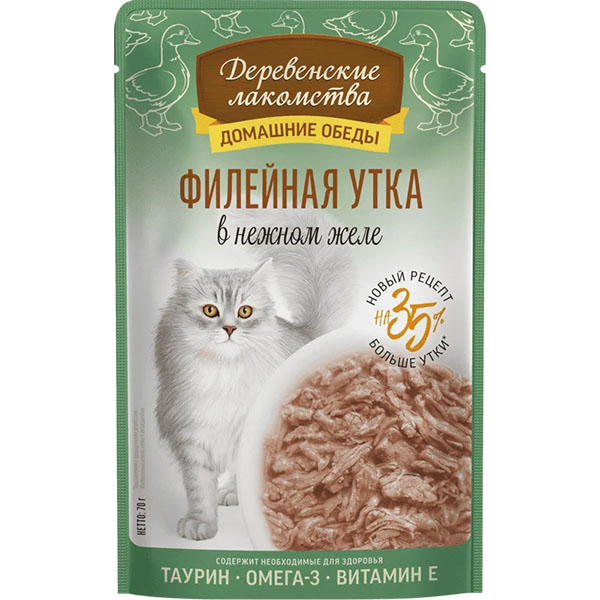 Деревенские лакомства д/кош пауч Филейная утка в нежном желе 70г АКЦИЯ -10%