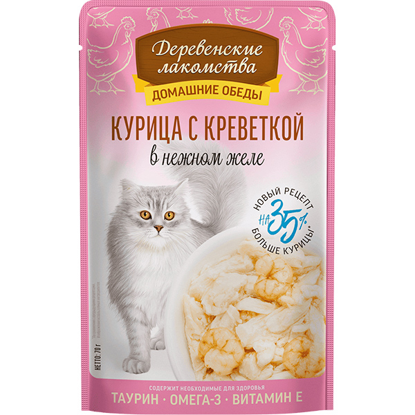 Деревенские лакомства д/кош пауч Курица с креветкой в нежном желе 70г АКЦИЯ -10%