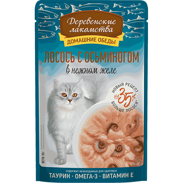 Деревенские лакомства д/кош пауч Лосось с осьминогом в нежном желе 70г АКЦИЯ -10%