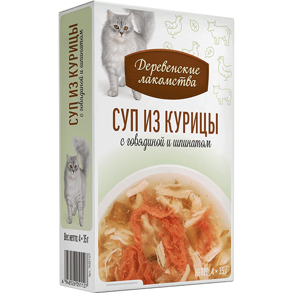 Деревенские лакомства д/кош пауч суп из курицы с говяд и шпинатом 35г*4шт АКЦИЯ -10%