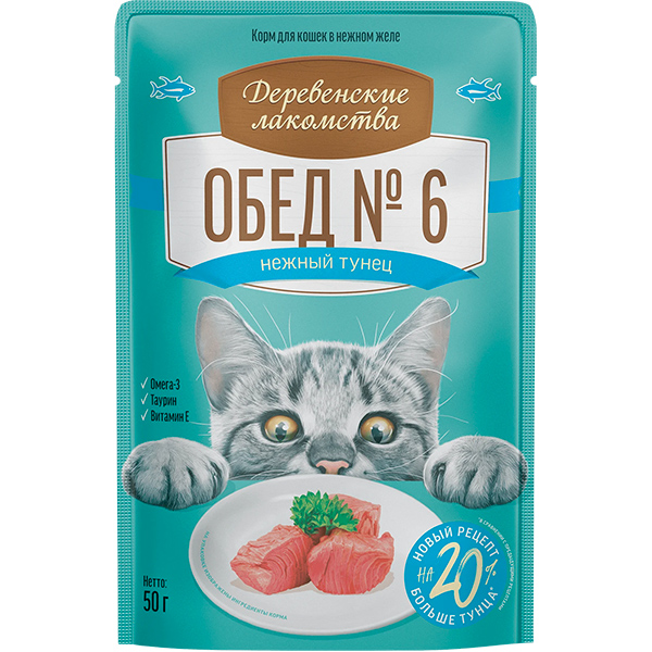 Деревенские лакомства д/кош пауч Тунец нежный Обед №6 50г АКЦИЯ -10%