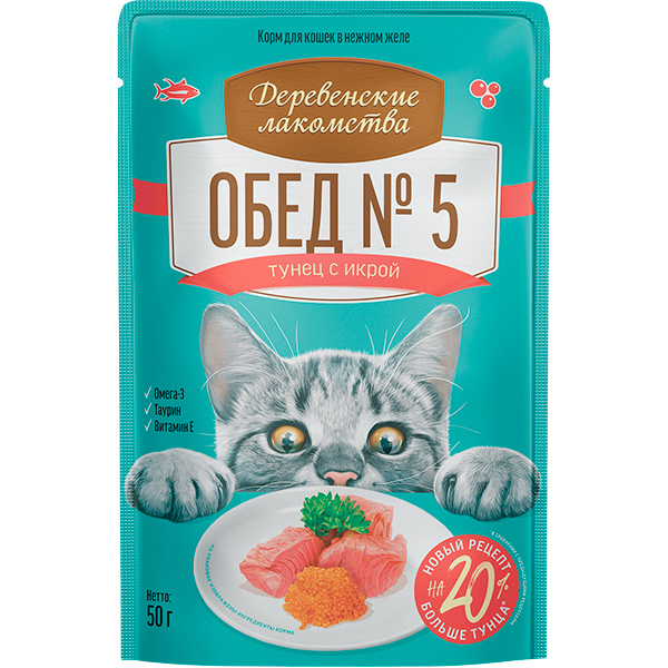 Деревенские лакомства д/кош пауч Тунец с икрой Обед №5 50г АКЦИЯ -10%