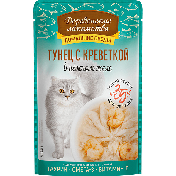 Деревенские лакомства д/кош пауч Тунец с креветкой в нежном желе 70г АКЦИЯ -10%