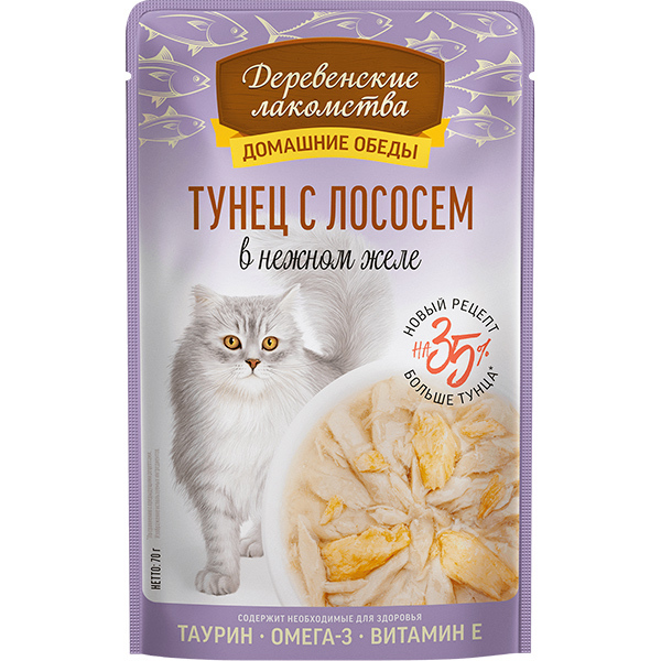 Деревенские лакомства д/кош пауч Тунец с лососем в нежном желе 70г АКЦИЯ -10