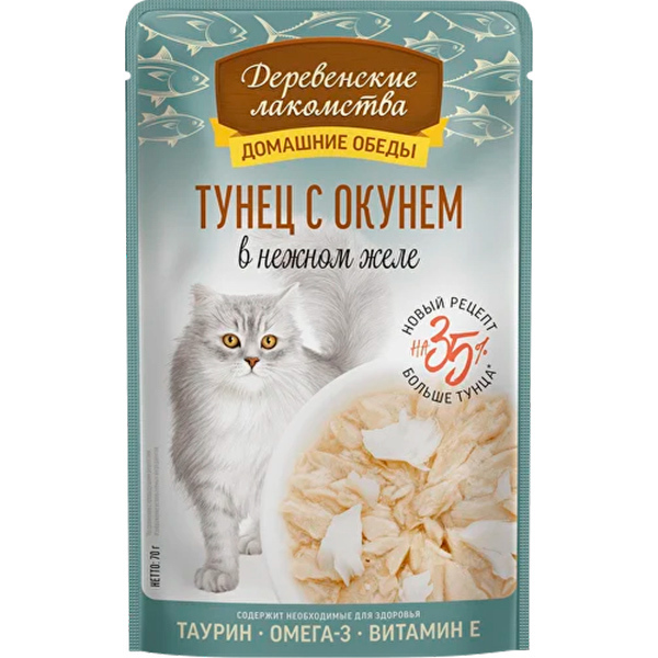 Деревенские лакомства д/кош пауч Тунец с окунем в нежном желе 70г АКЦИЯ -10%
