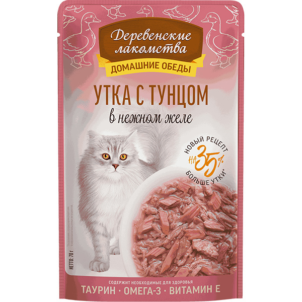 Деревенские лакомства д/кош пауч Утка с тунцом в нежном желе 70г АКЦИЯ -10%