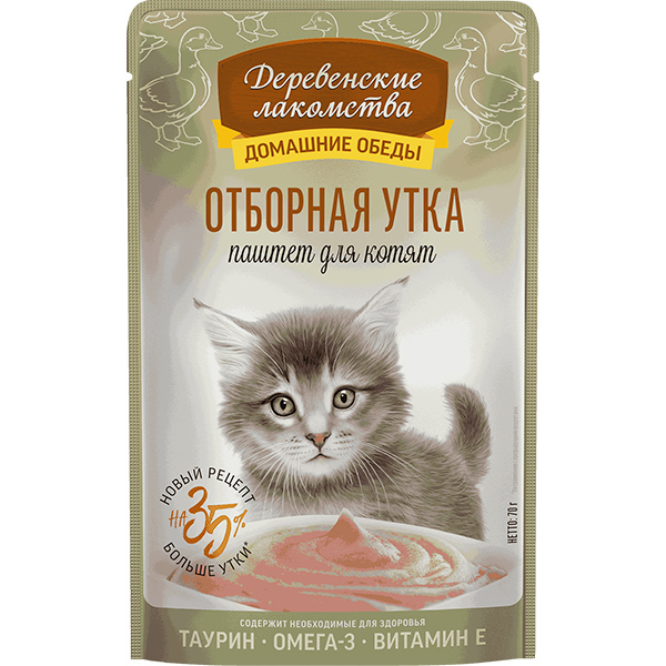 Деревенские лакомства д/котят пауч Отборная утка паштет 70г АКЦИЯ -10