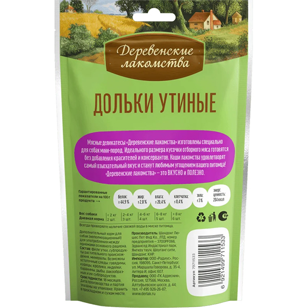 Деревенские лакомства д/мини пород Дольки утиные 55г АКЦИЯ (при покупке кратно 6)