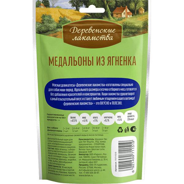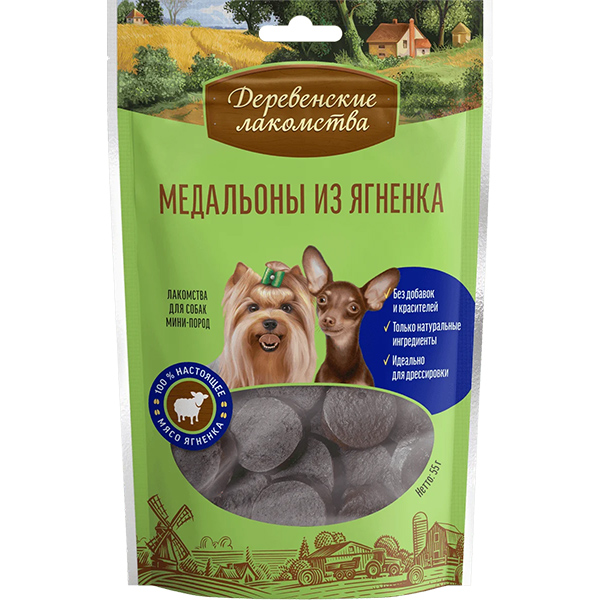 Деревенские лакомства д/мини пород Медальоны из ягненка 55г АКЦИЯ (при покупке кратно 6)
