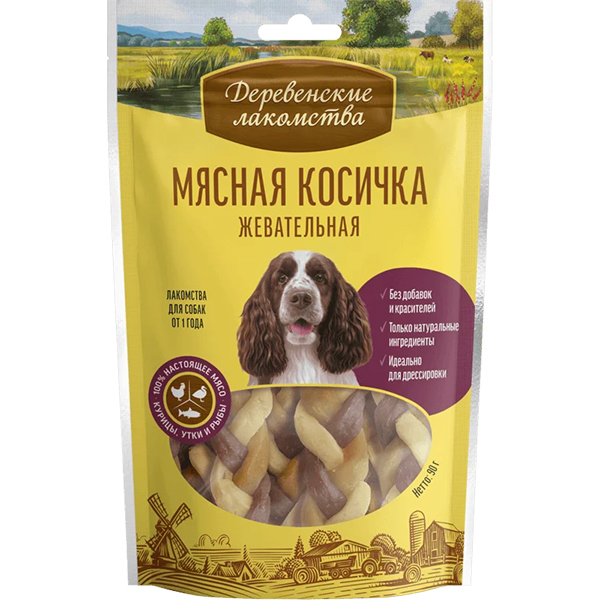 Деревенские лакомства д/соб. Мясная косичка жевательная, 90г АКЦИЯ -15