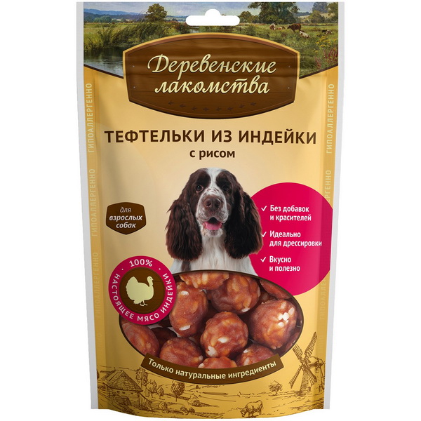 Деревенские лакомства д/соб. Тефтельки из индейки с рисом85г АКЦИЯ -15%