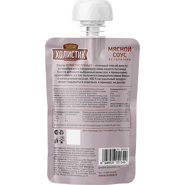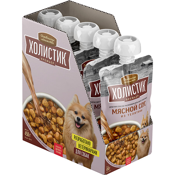 Соусы «Холистик Премьер» для собак помогут разнообразить вкус повседневного корма. Выберите мясной соус из телятины от «Деревенских лакомств», обильно полейте им сухой корм, и новое блюдо с ярким вкусом готово. 100 % натуральный продукт может подаваться отдельно, к примеру, на десерт. Дополнительный корм для собак (неполнорационный). Рекомендован как добавка к сухому корму или как самостоятельное угощение для собак.