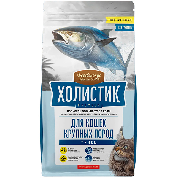 Деревенские лакомства Холистик Премьер сух.корм д/кош круп.пород 2кг Тунец АКЦИЯ -20%