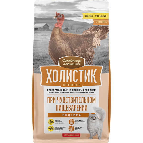 Полнорационный и идеально сбалансированный корм Холистик Премьер «при чувствительном пищеварении» разработан специально для кошек, требующих особого внимания к рациону.