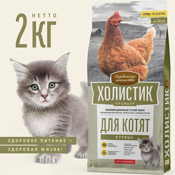 Деревенские лакомства Холистик Премьер сух.корм д/котят 2кг курица АКЦИЯ -20%
