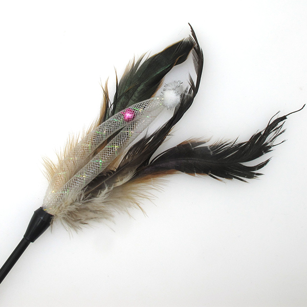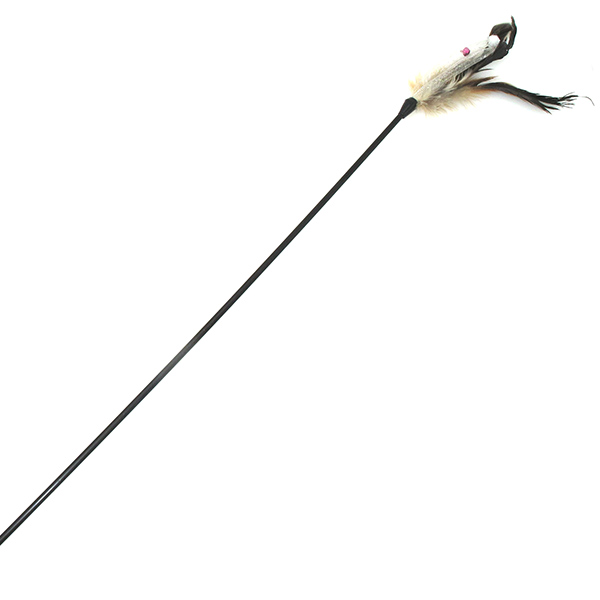 Дразнилка-удочка Пружинки с перьями, пластиковая палочка 40 см Кот Лукас