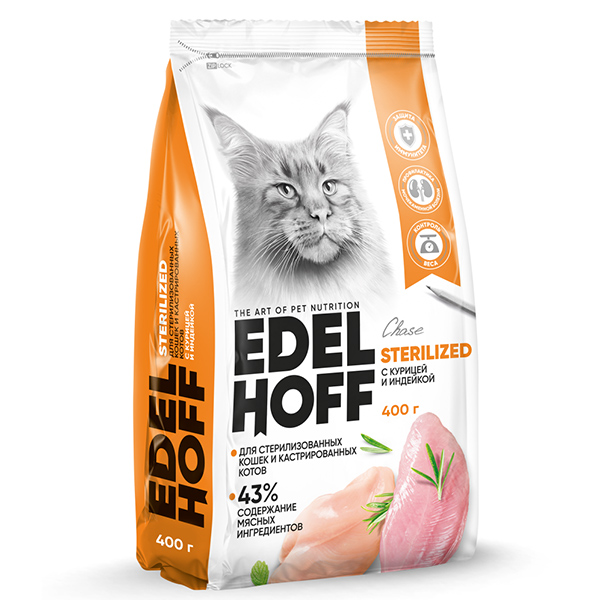 Edelhoff сухой д/кошек стерилизованных КУРИЦА/ИНДЕЙКА 0,4кг