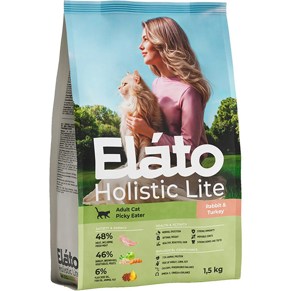 Elato Holistic Lite д/кош взр.привередл. Кролик/Индейка 1,5 кг СКИДКА 50% кратно 2шт