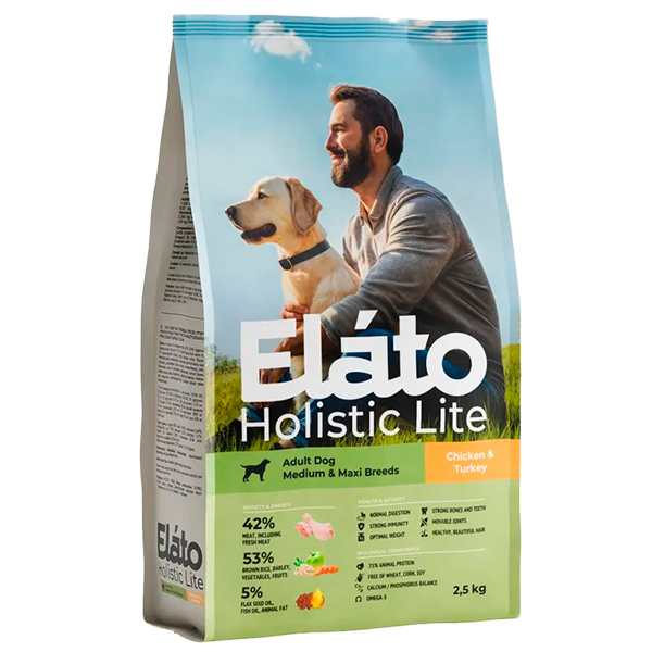 Elato Holistic Lite д/взр.соб. Сред. и круп. пород Курица/Индейка 2,5 кг СКИДКА 50% кратно 2шт