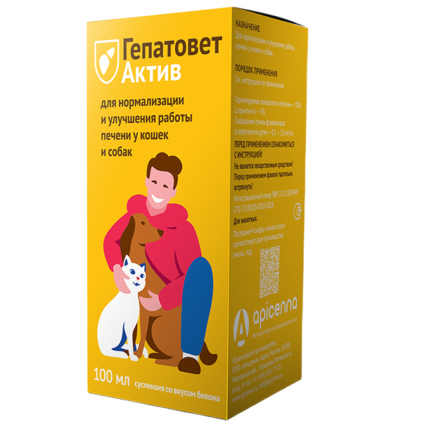 Гепатовет Актив суспензия д/лечения печени у собак и кошек 100мл