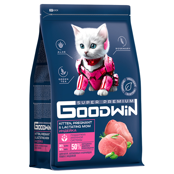 Полнорационный корм GOODWIN Super Premium для котят, беременных и кормящих кошек с индейкой