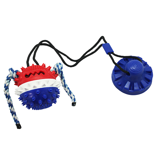 Игрушка д/собак Тяни-кусай на одной присоске 71см сине-красный шипованный мяч с веревкой.N1