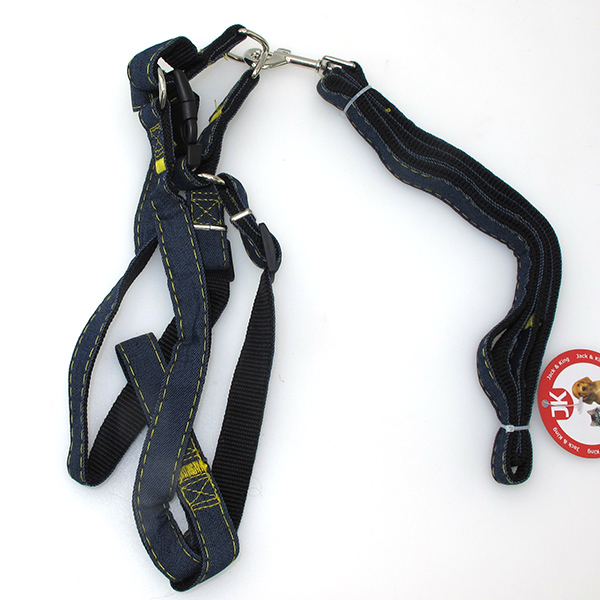 Комплект Jack&King поводок 2,0см*120см+шлейка грудь 35-52см джинс черный, арт. JK82115