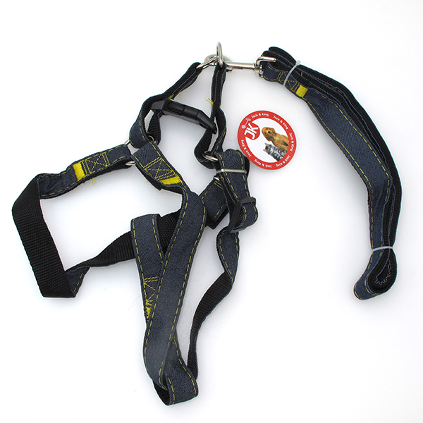 Комплект Jack&King поводок 2,5см*120см+шлейка грудь 42-62см джинс черный, арт. JK82122
