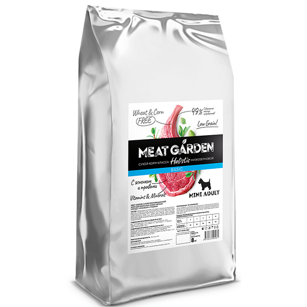 Meat Garden д/собак 8 кг мелк. Ягненок/Травы СРОК РЕАЛ 01.26