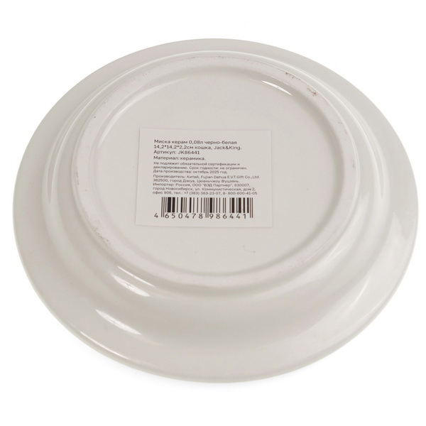 Миска керам 0,08л черно-белая 14,2*14,2*2,2см кошка, Jack&King арт. JK86441