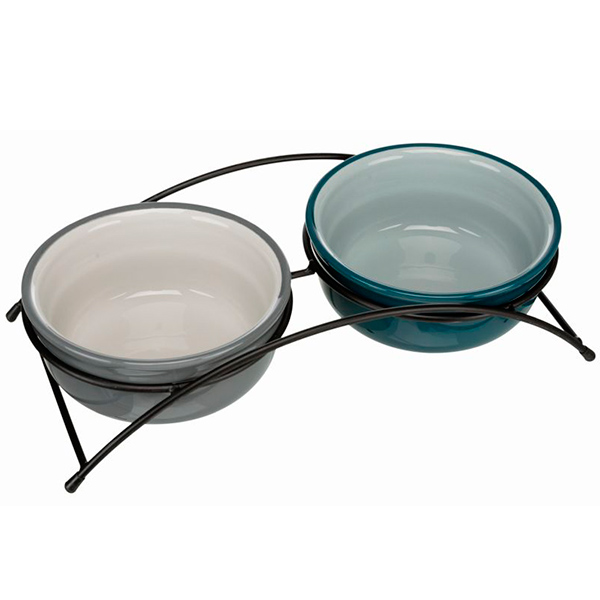 Миска керам двойная 2*0,25л петроль/светлый петроль/серый/светло-серый с рис. ф13см TRIXIE