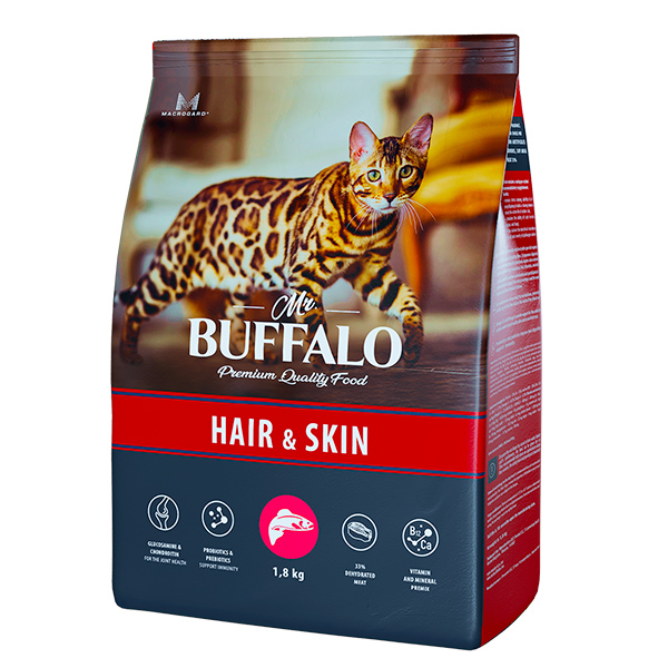 Mr.Buffalo сухой корм д/кошек ADULT HAIR & SKIN 1,8 кг лосось СРОК РЕАЛ 01.05.26