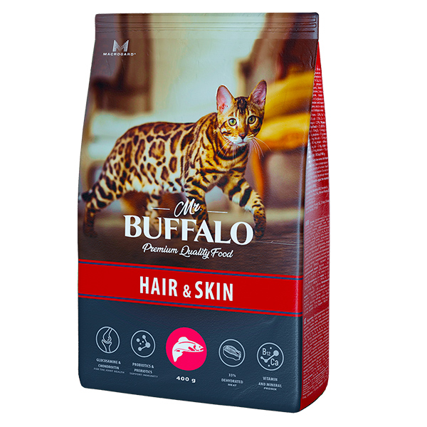 Mr.Buffalo сухой корм д/кошек ADULT HAIR & SKIN 400г лосось срок реал 01.26
