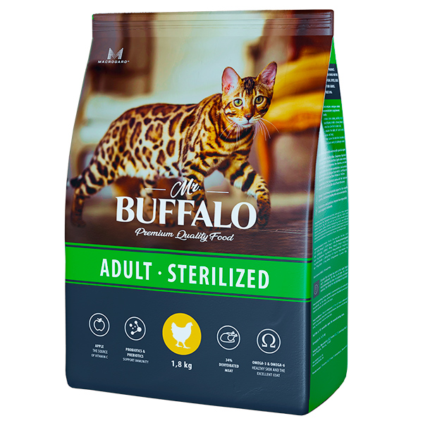 Mr.Buffalo сухой корм д/кошек STERILIZED 1,8 кг курица срок реал. 03.26г