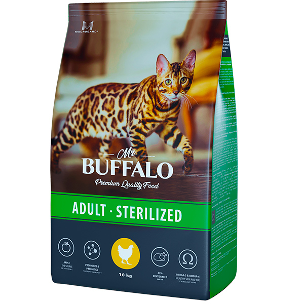 Mr.Buffalo сухой корм д/кошек STERILIZED 10 кг курица СРОК РЕАЛ 01.07.26